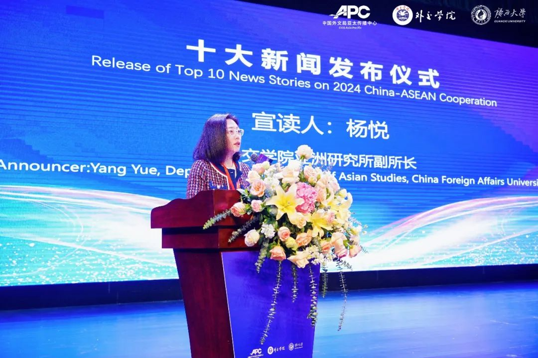 2月27日,南宁,杨悦代表主办方正式发布“2024年中国-东盟合作十大新闻”。主办方供图