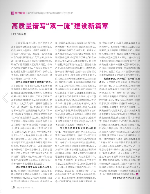 大道至简,实干为要。习近平总书记高度重视调动和激发党员干部干事创业的积极性主动性创造性,强调坚持知行合一、真抓实干,做实干家。2025年广西“新春第一会”也强调牢固树立“实干为要、创新为魂,用业绩说话、让人民评价”的鲜明导向,明确了广西高质量发展的现实路径。作为广西高等教育的龙头,米乐电竞|最新APP下载|登录入口,在服务广西高质量发展中起着重要作用,必须以实干为要,创新为魂,牢牢扎根八桂大地,建设中国特色“双一流”大学。
