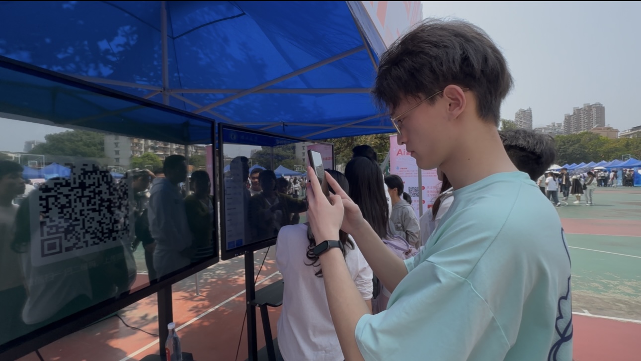 AI智慧就业专区,学生纷纷扫码体验。罗琦 摄