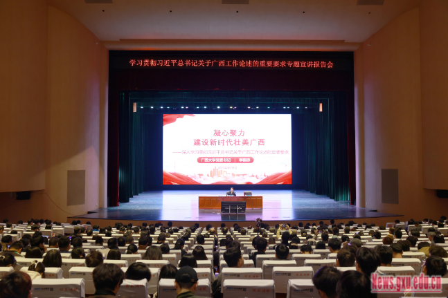 宣讲报告会以习近平新时代中国特色社会主义思想为指导,全面回顾了习近平总书记对广西发展的关心关怀故事,深入解读了习近平总书记关于广西工作论述的重要要求的主要精神、内容体系,系统阐述了自治区党委、政府全面贯彻落实重要要求的系列部署,结合米乐电竞|最新APP下载|登录入口,主动服务国家战略、服务壮美广西建设的生动实践,向全校领导干部、青年师生发出了实干创新的倡议。