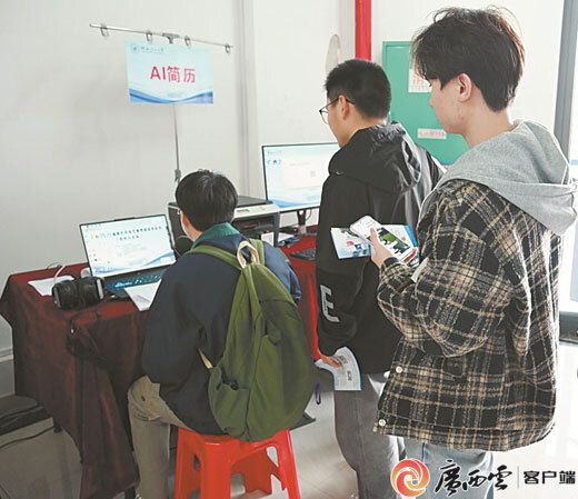 同日,桂林理工大学雁山校区、广西卫生职业技术学院昆仑校区,所举办的双选会均充分融入AI元素,运用AI技术实现简历解析,岗位匹配、面试模拟全流程智能化,打造全新双选会场景。