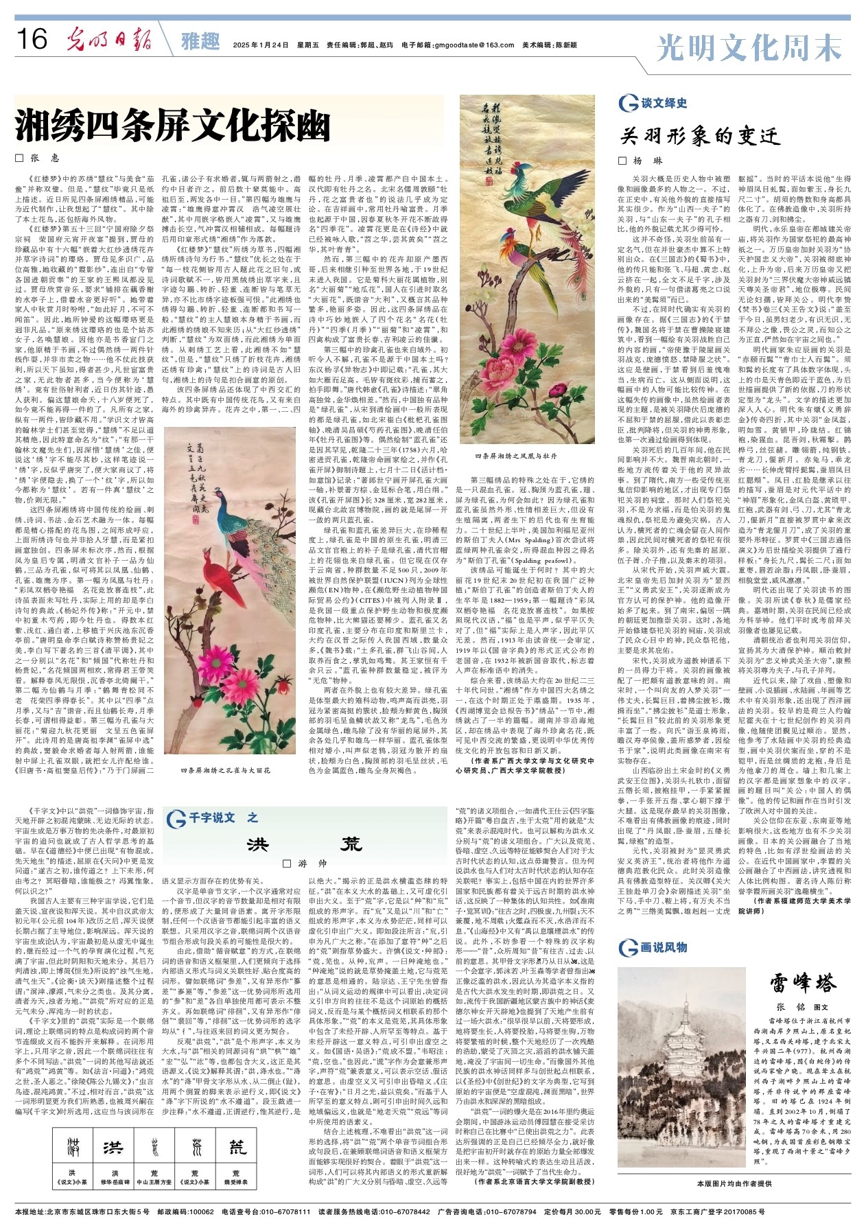 《红楼梦》中的苏绣“慧纹”与美食“茄鲞”并称双璧。但是,“慧纹”毕竟只是纸上描述。近日所见四条屏湘绣精品,可能为近代制作,让我想起了“慧纹”。其中除了本土花鸟,还包括海外风物。