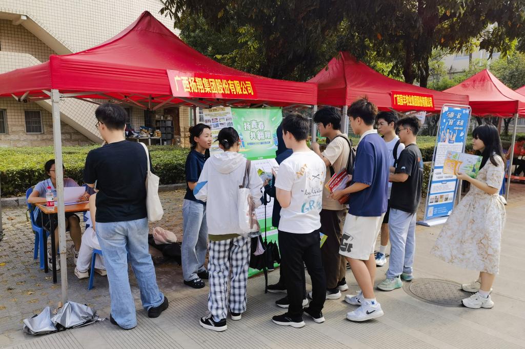 本次双选会应用数字技术,依托微信公众号、学院主页等平台,及时将参会信息推送给在校学生和用人单位,通过开展精准对接服务,大大提高求职学生和用人单位参会的便捷度、满意度。现场的广西高校毕业生“留桂就业计划”展区为参会学生展示了各设区市就业创业政策清单。此外,现场还设置了党员先锋服务岗,提供政策咨询、手续办理、资料打印等志愿服务。