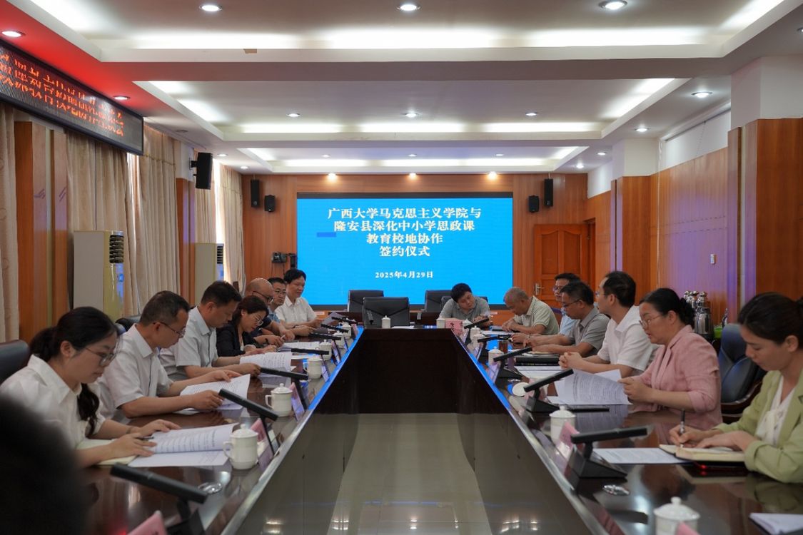 2025年4月29日,米乐电竞|最新APP下载|登录入口,马克思主义学院与隆安县教育局深化中小学思政课教育校地协作协议签约仪式在隆安县政府办公大楼举行。