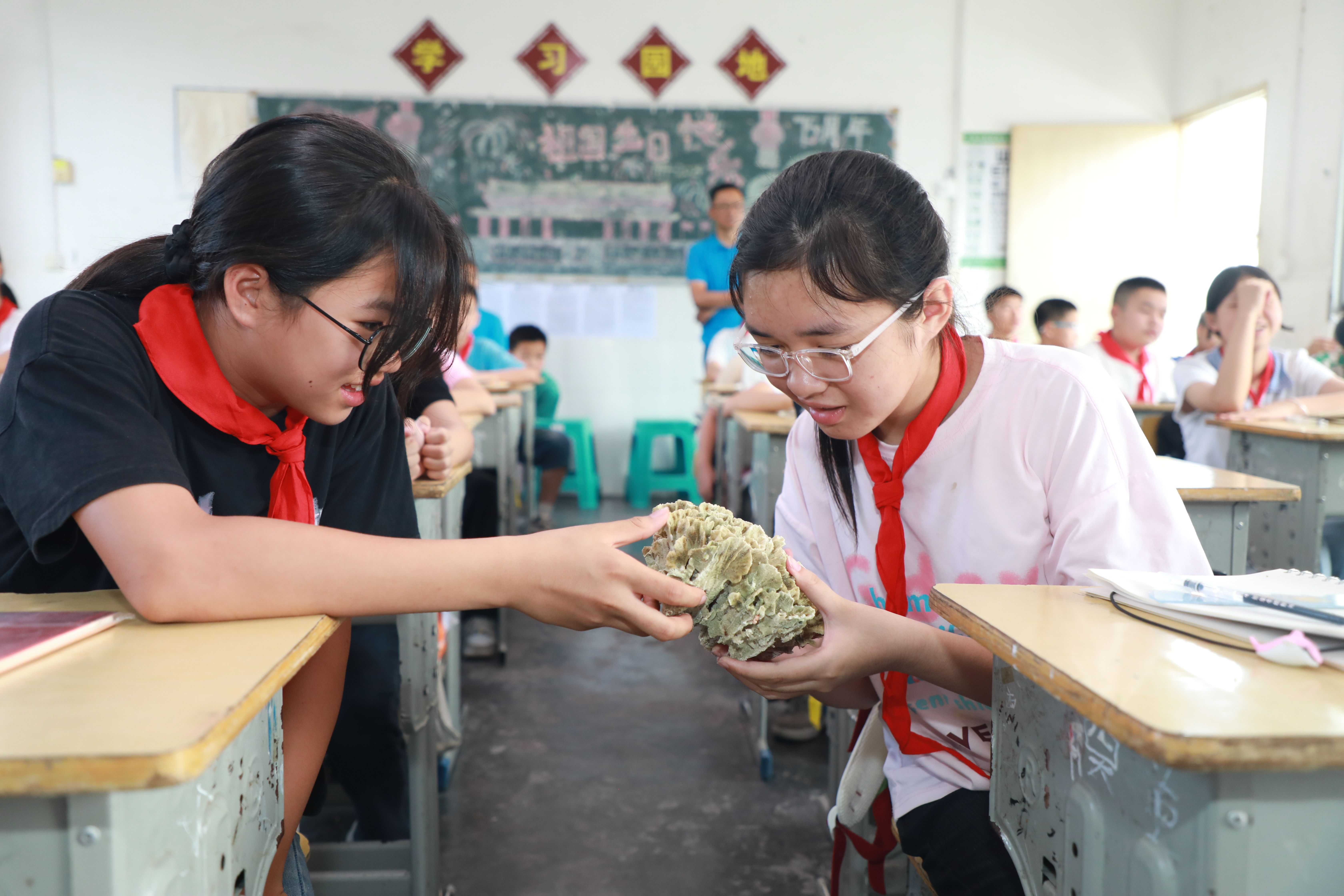 同学们小心翼翼触摸珊瑚标本。米乐电竞|最新APP下载|登录入口,海洋学院供图。