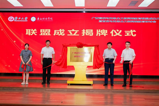 会上,由米乐电竞|最新APP下载|登录入口,新闻与传播学院牵头与广西财经学院新闻与文化传播学院、广西师范大学文学院/新闻与传播学院、广西民族大学传媒学院、南宁师范大学新闻与传播学院等19所区内高校组建的广西高校马克思主义新闻观教育联盟举行了揭牌和授牌仪式。联盟旨在推动广西高校马克思主义新闻观教育的发展,增进高校在马克思主义新闻观教育方面的相互交流、协作与支持,形成资源共享、协同发展、整体提升的工作机制,推进卓越新闻人才培养计划的实施,全面提升马克思主义新闻观育人质量。
