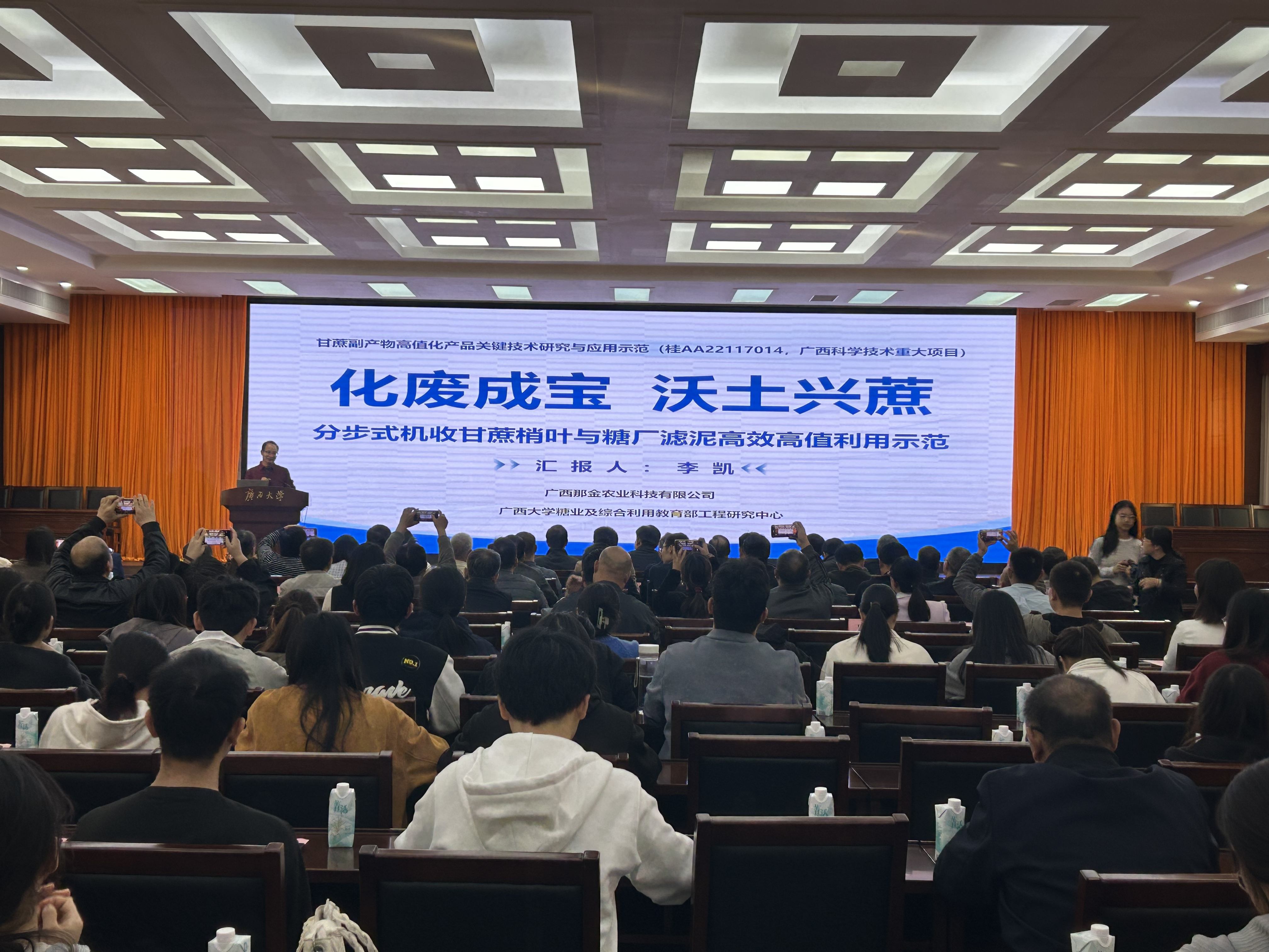 11月27日,「化廢成寶 沃土興蔗」— 分步式機收甘蔗葉與糖廠濾泥高效高值利用技術與成果推介發布會在廣西南寧市舉行。發布會重點聚焦的成果來自廣米乐电竞|最新APP下载|登录入口,學綠色製糖團隊所承擔的「十四五」廣西糖料蔗科技重大專項「甘蔗副產物高值化產品關鍵技術研究與應用示範」。