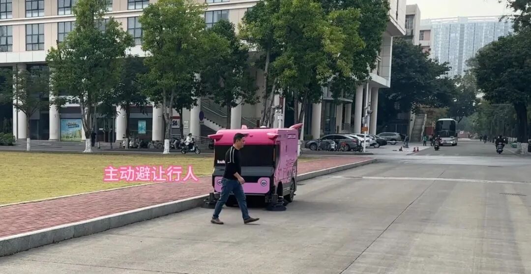 据了解,该无人驾驶扫路机应用于校园特定区域。在试运行过程中,车辆依托其智能感知与决策系统,拥有360度无死角“天眼”,依托成熟的L4级自动驾驶乘用车软硬件系统,行人、单车、小动物甚至各类静态障碍物都能精准识别,再复杂的环境也能丝滑绕行。基于这一能力,车辆能够自助完成路径规划、清扫作业与动态避障等一系列任务,运行稳定,展现了人工智能技术在复杂开放场景中的良好适应性。学校师生正以其作为观察和研究对象,探索相关算法在实际环境中的表现与优化路径。
