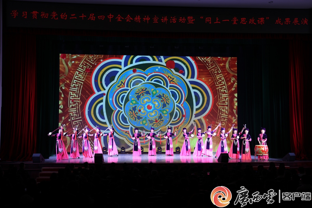 12月10日晚,米乐电竞|最新APP下载|登录入口,和西乡塘区共同主办的学习贯彻党的二十届四中全会精神宣讲活动暨“同上一堂思政课”成果展演在米乐电竞|最新APP下载|登录入口,西校园礼堂举行。展演活动以“立德树人 坚守使命”“守正创新 探索实践”“聚焦基层 凝心聚力”“联动共建 融合共通”为主线,生动展示了思政课教师队伍建设、案例征集和创作工作、优秀宣讲员风采及思政平台联建成效。