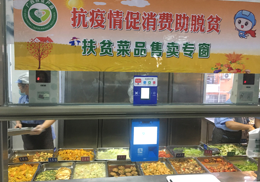 资产经营有限公司联合相关部门充分利用校内食堂和校园超市平台,挖掘扶贫农产品亮点,举办了“抗疫情促消费助脱贫”扶贫产品校园展销会、开辟了食堂扶贫产品售卖窗、校园超市扶贫产品专柜,帮助贫困地区拓宽农产品销售渠道。