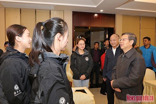 10月17日,校党委书记刘正东带队赴那坡县开展扶贫日系列活动期间,慰问了在当地支教的我校第八届研究生支教团成员,并听取了支教团负责人关于教育扶贫工作的汇报,肯定了支教团所取得的成绩,勉励同学们忠于岗位,勇于在实践中磨砺成长,在脱贫攻坚战中用努力展现米乐电竞|最新APP下载|登录入口,学子的榜样担当。