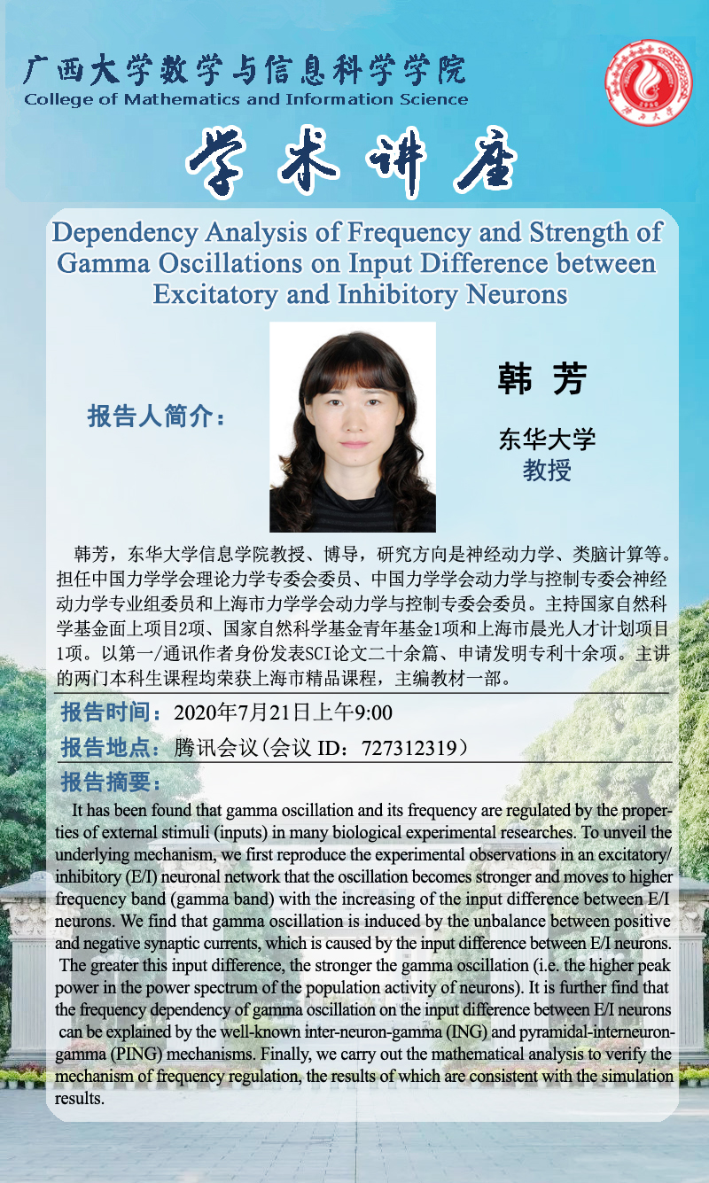 数信学院学术海报:Dependency Analysis of Frequency and Strength of Gamma Oscillations on Input Difference between Excitatory and Inhibitory Neurons