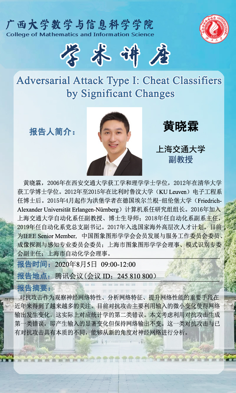 数信学院学术报告:Adversarial Attack Type I: Cheat Classifiers by Significant Changes