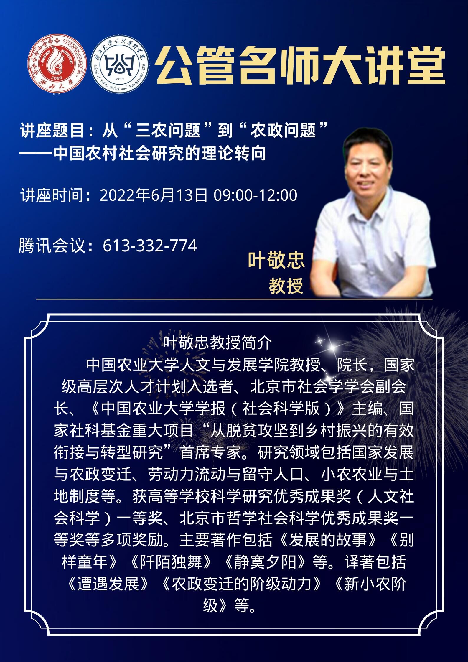 公管名师大讲堂:从“三农问题”到“农政问题”——中国农村社会研究的理论转向