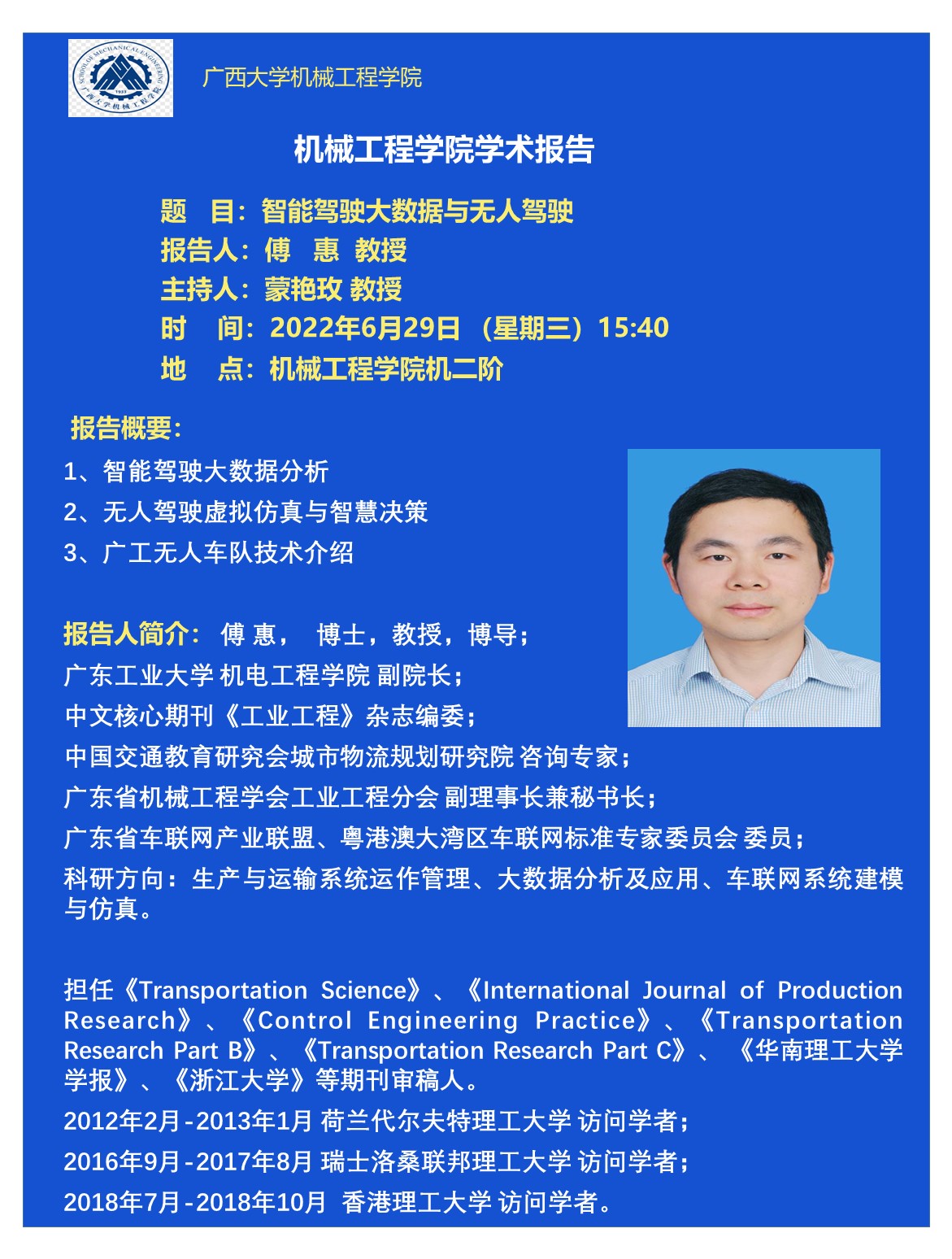 机械工程学院学术报告:智能驾驶大数据与无人驾驶