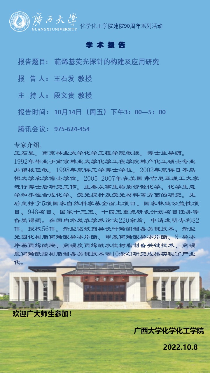 化学化工学院建院九十周年系列学术报告:萜烯基荧光探针的构建及应用研究