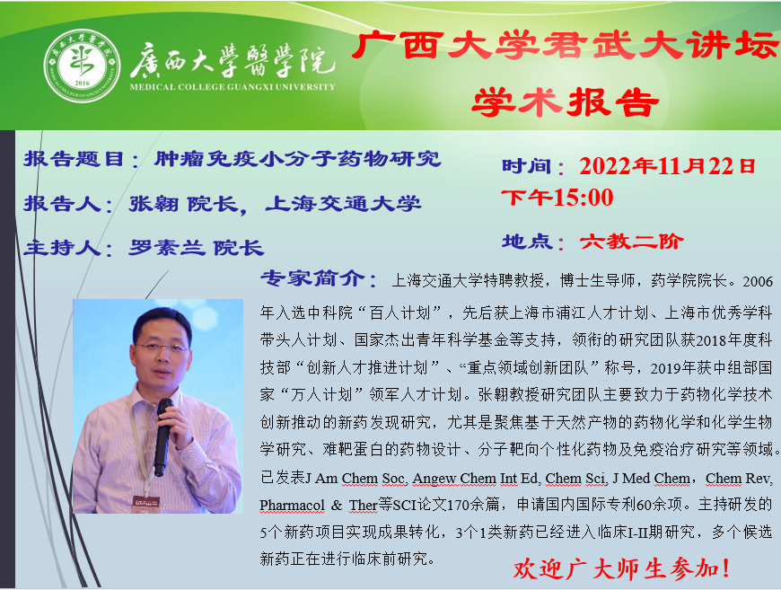 君武大讲坛医学院学术报告:肿瘤免疫小分子药物研究