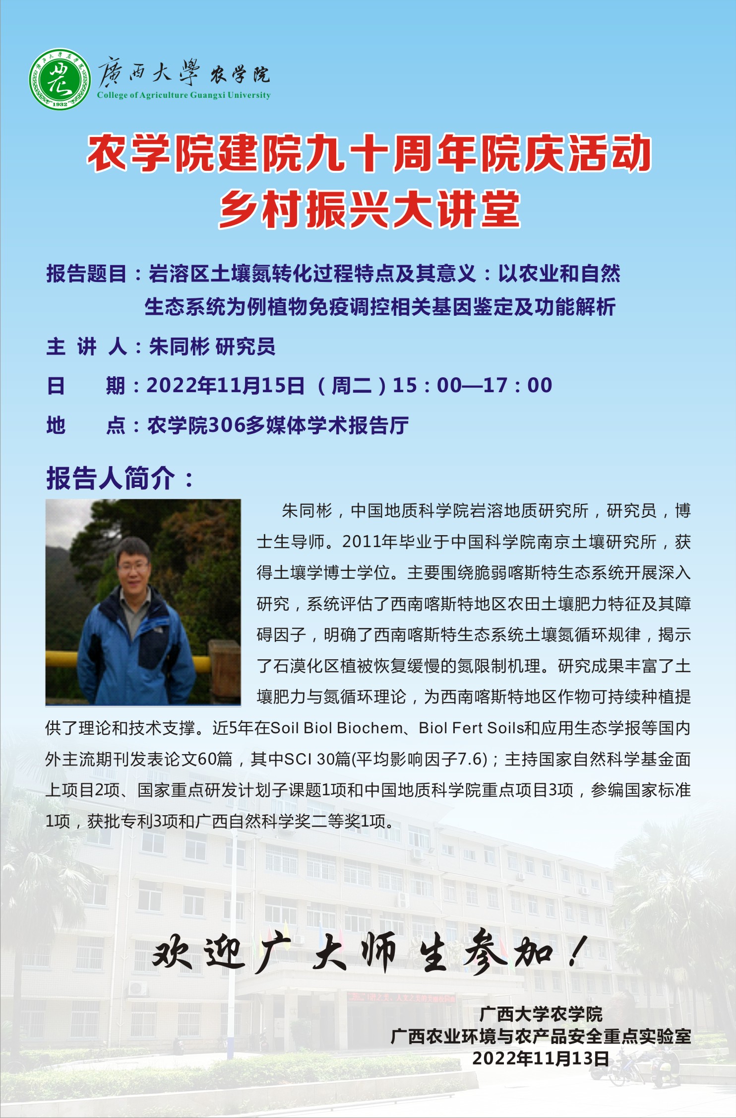 农学院九十周年院庆暨广西农业环境与农产品安全重点实验室年会植物保护方向高端讲坛