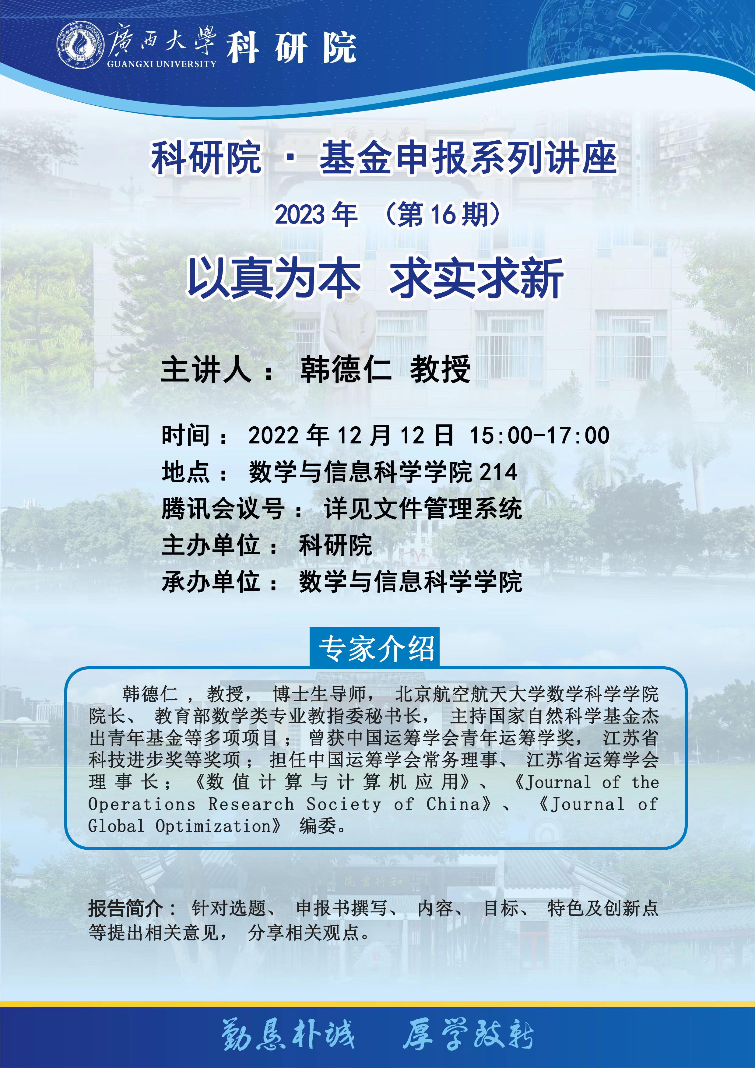 科研院·基金申报系列讲座 2023年(第16期)以真为本,求实求新