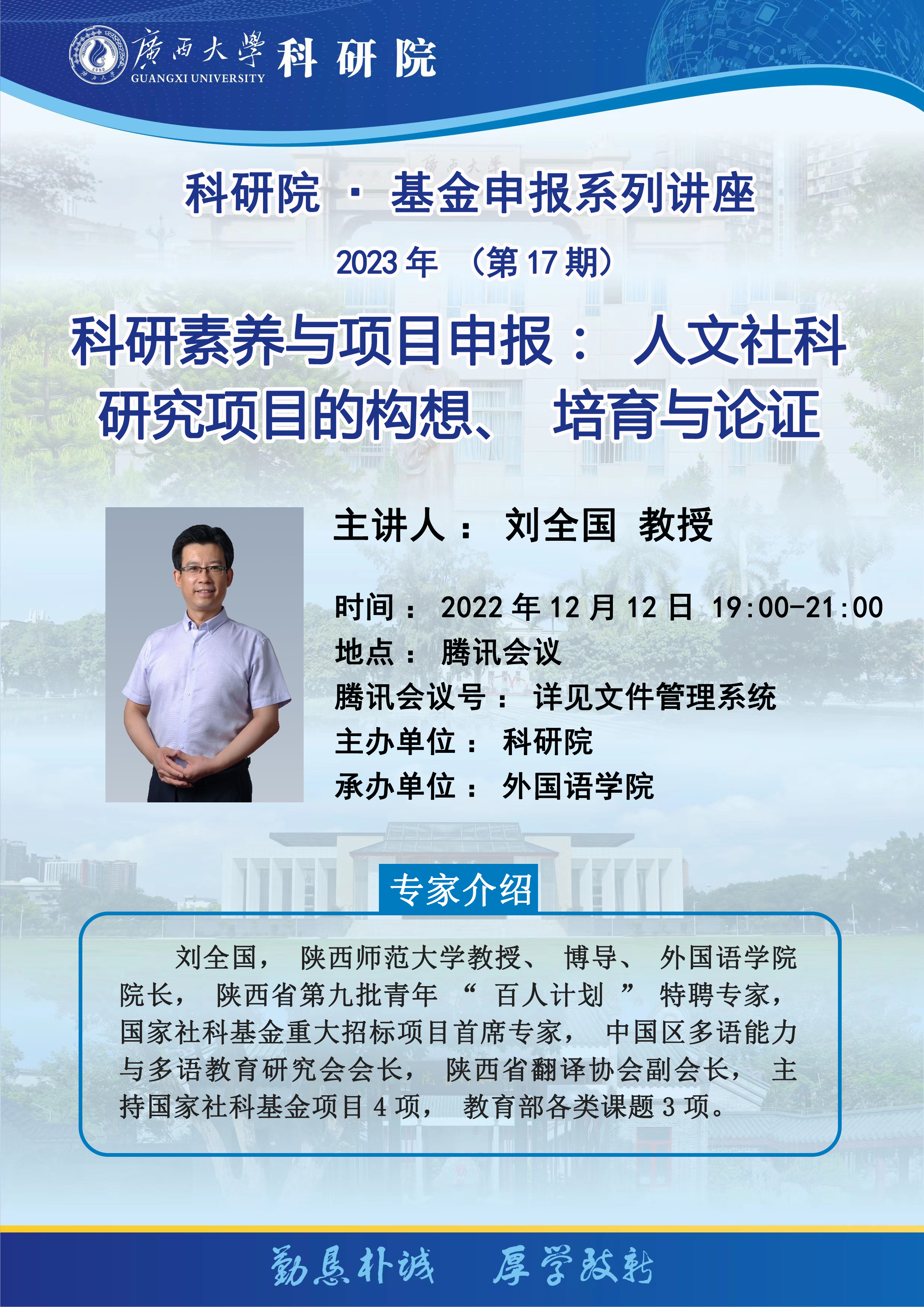 科研院·基金申报系列讲座 2023年(第17期)科研素养与项目申报:人文社科研究项目的构想、培育与论证