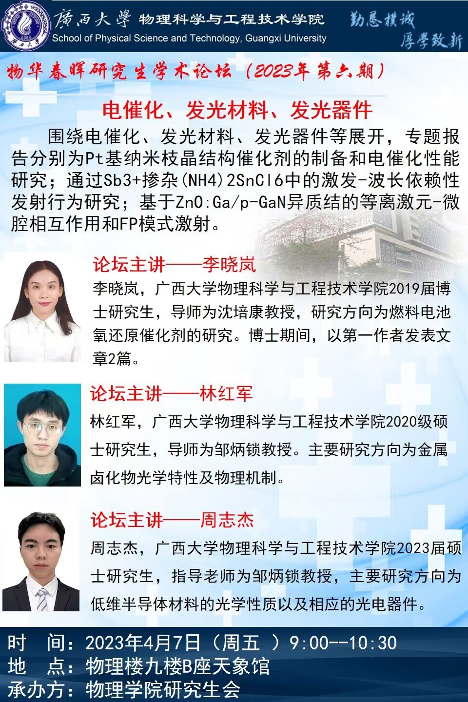 物理学院2023年物华春晖学术论坛(第六期):电催化、发光材料、发光器件