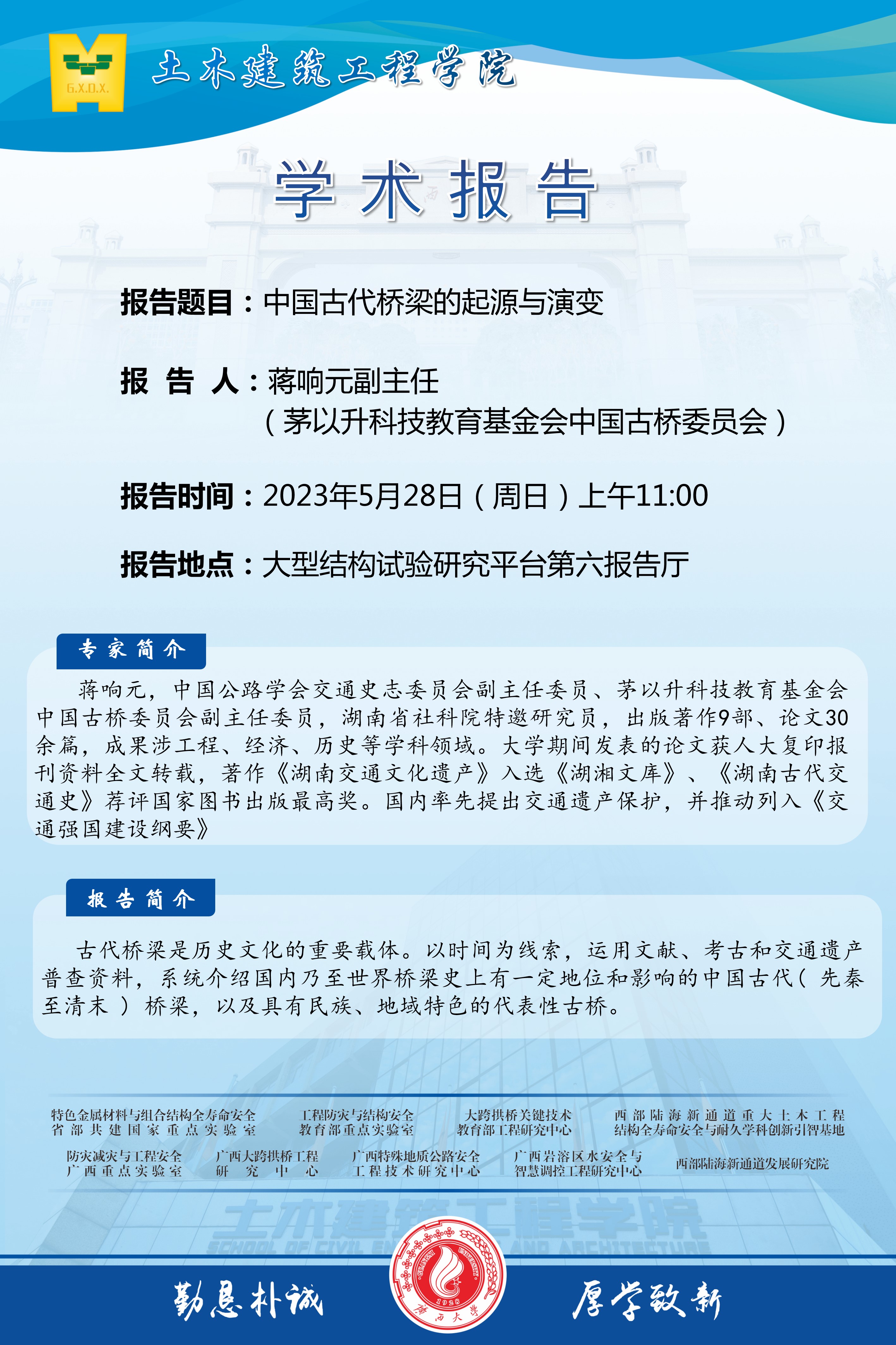 土木建筑工程学院学术报告:中国古代桥梁的起源与演变