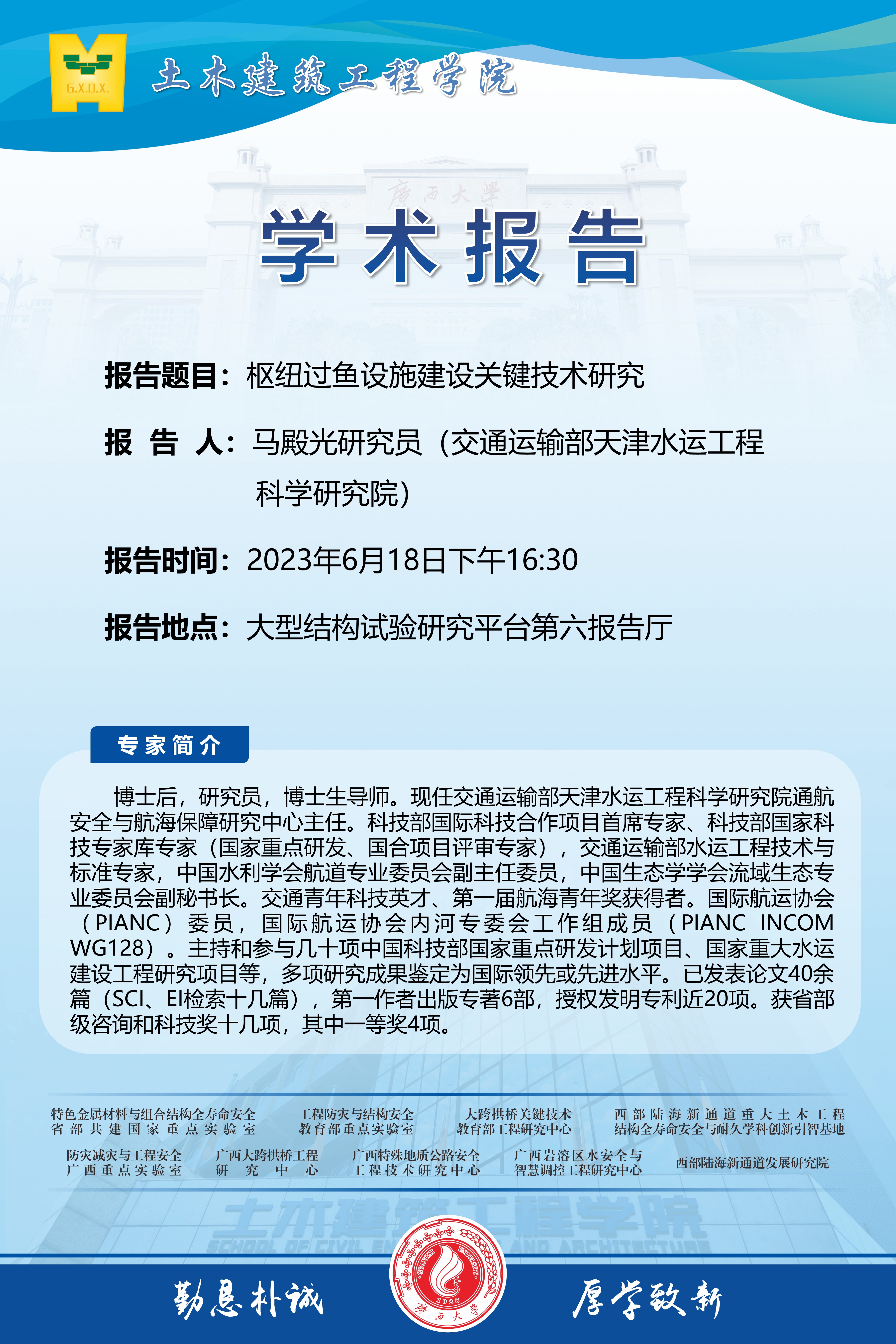 土木建筑工程学院学术报告:枢纽过鱼设施建设关键技术研究