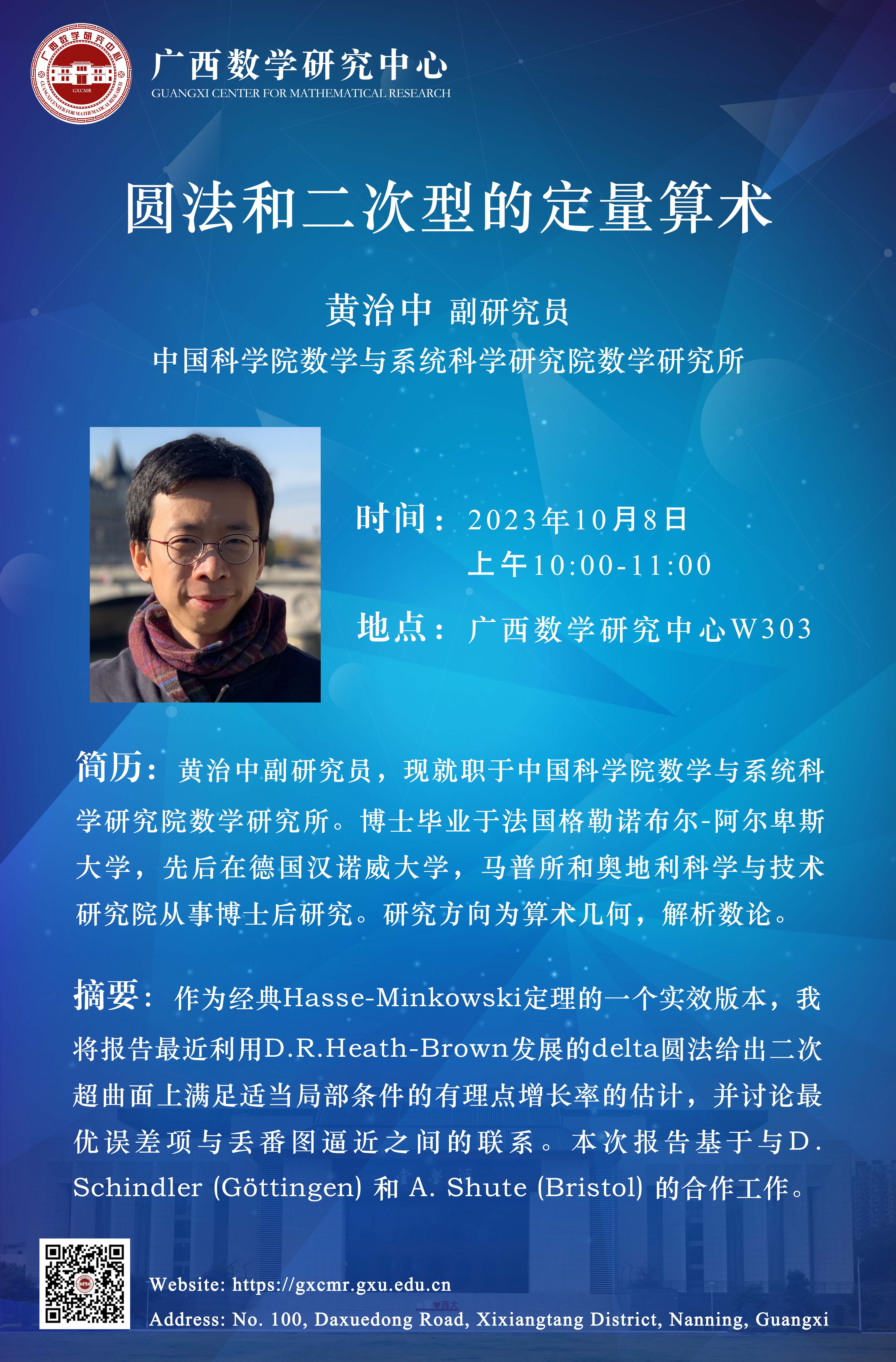 广西数学研究中心讲座:圆法和二次型的定量算术