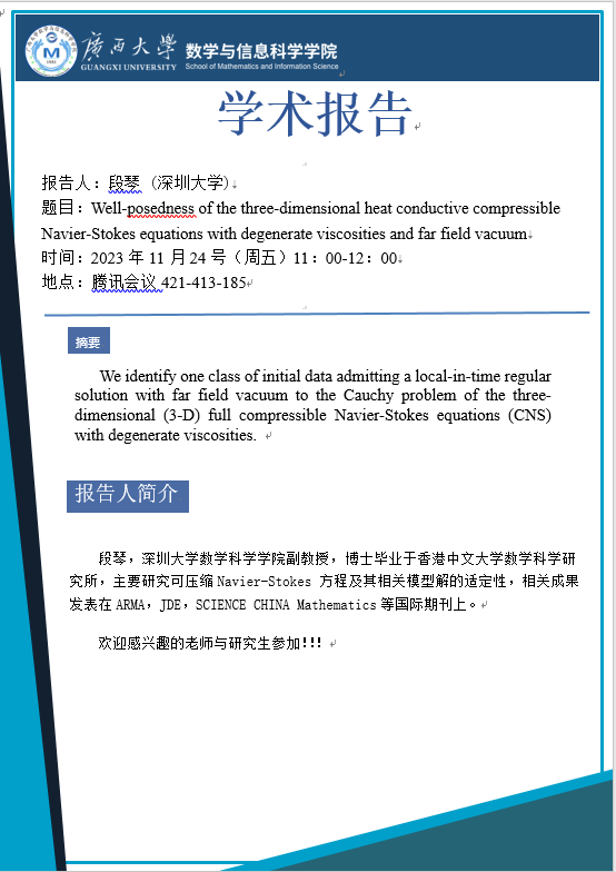 数信学院学术报告:Well-posedness of the three-dimensional heat conductive compressible Navier-Stokes equations with degenerate viscosities and far field vacuum