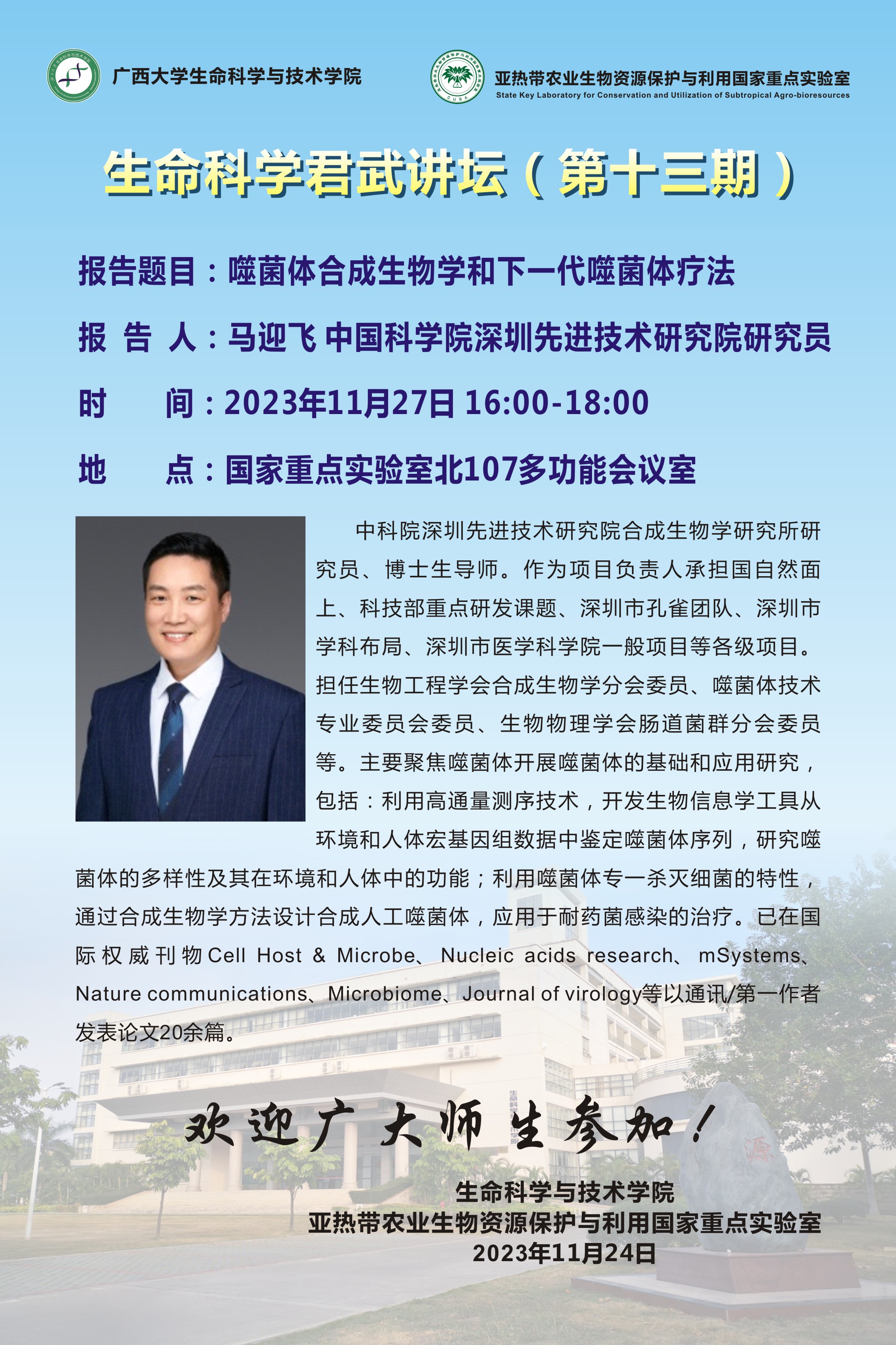 生命科学君武讲坛(第十三期) :噬菌体合成生物学和下一代噬菌体疗法