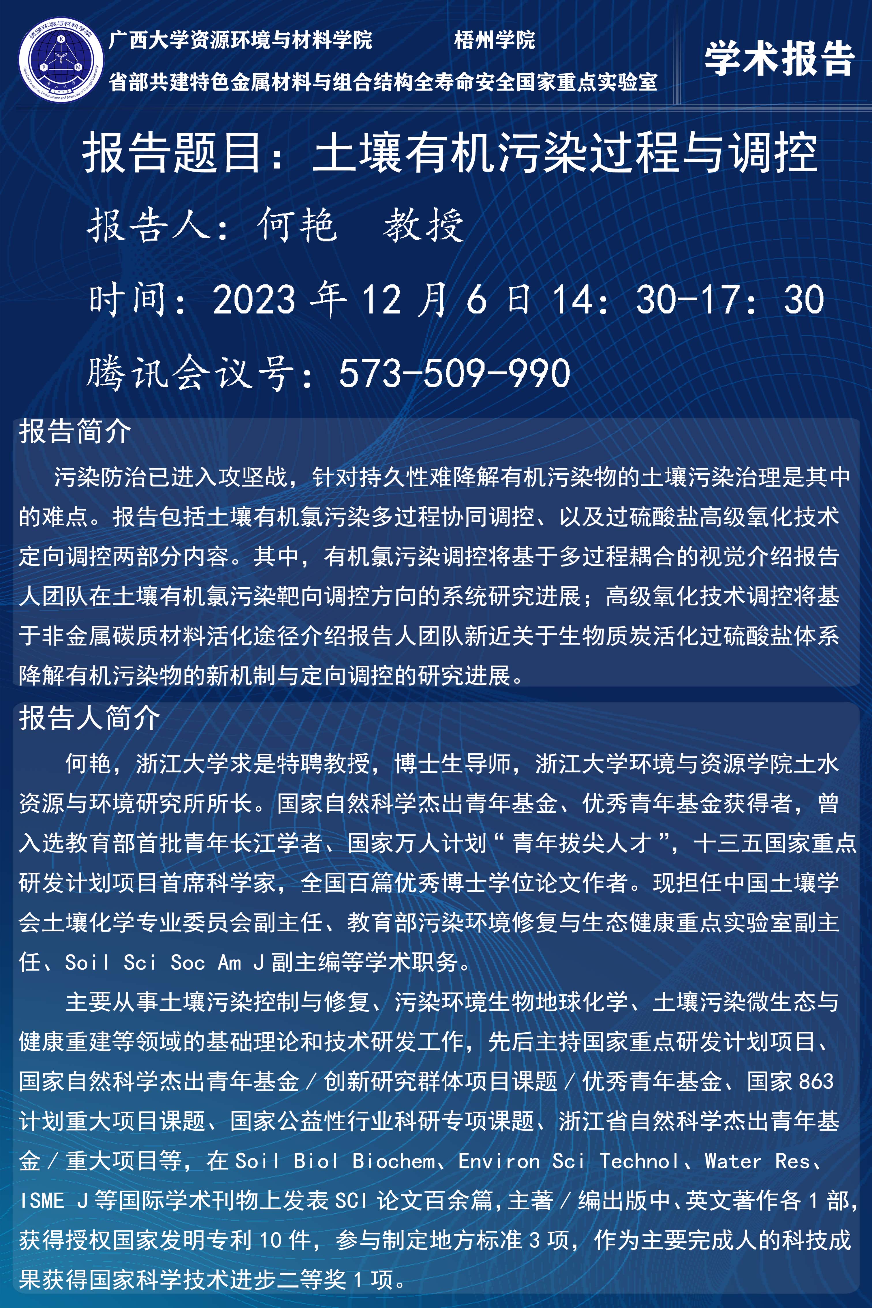 资源环境与材料学院学术报告:土壤有机污染过程与调控
