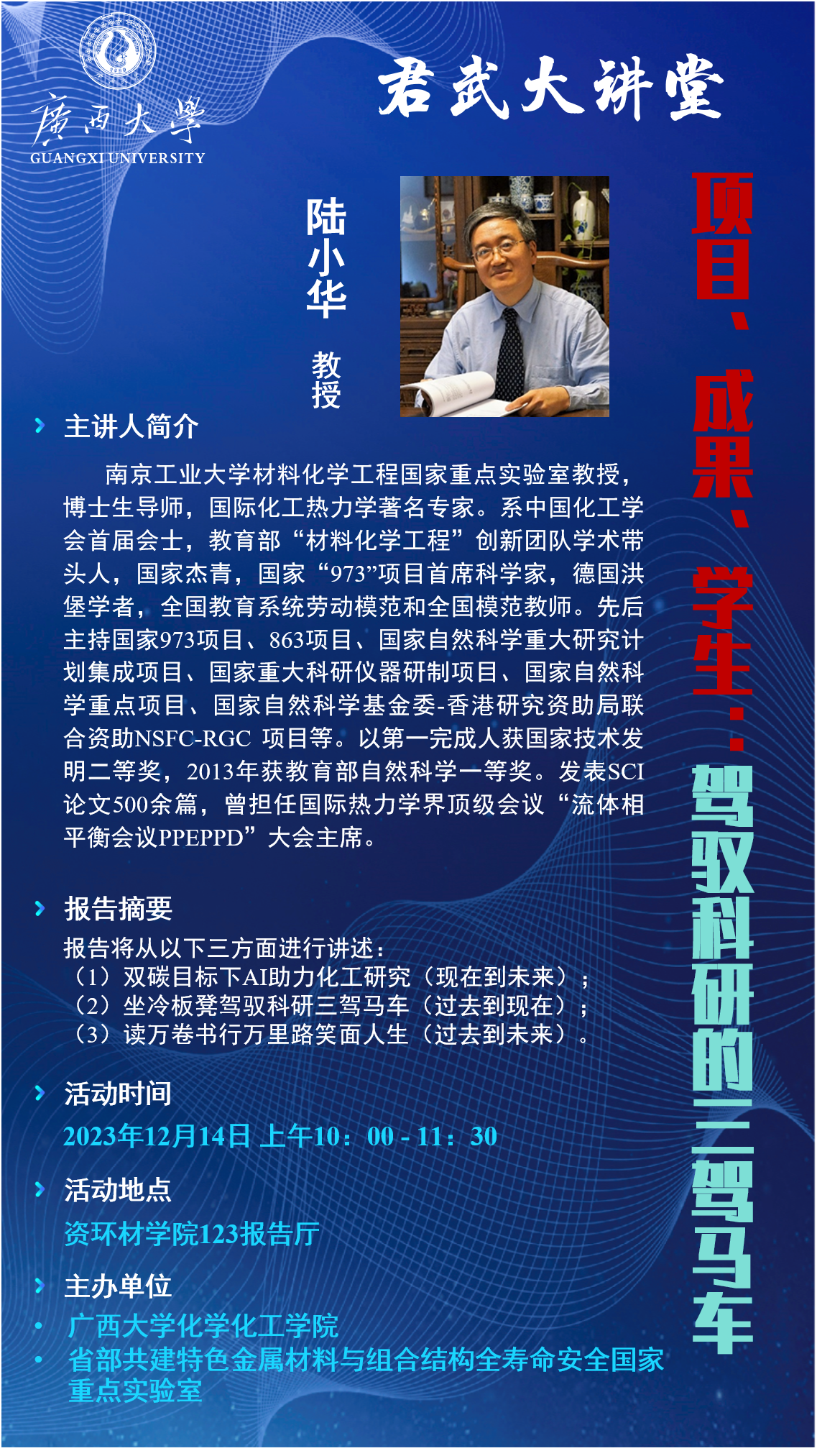 君武大讲坛学术报告:项目、成果、学生----驾驭科研的三驾马车