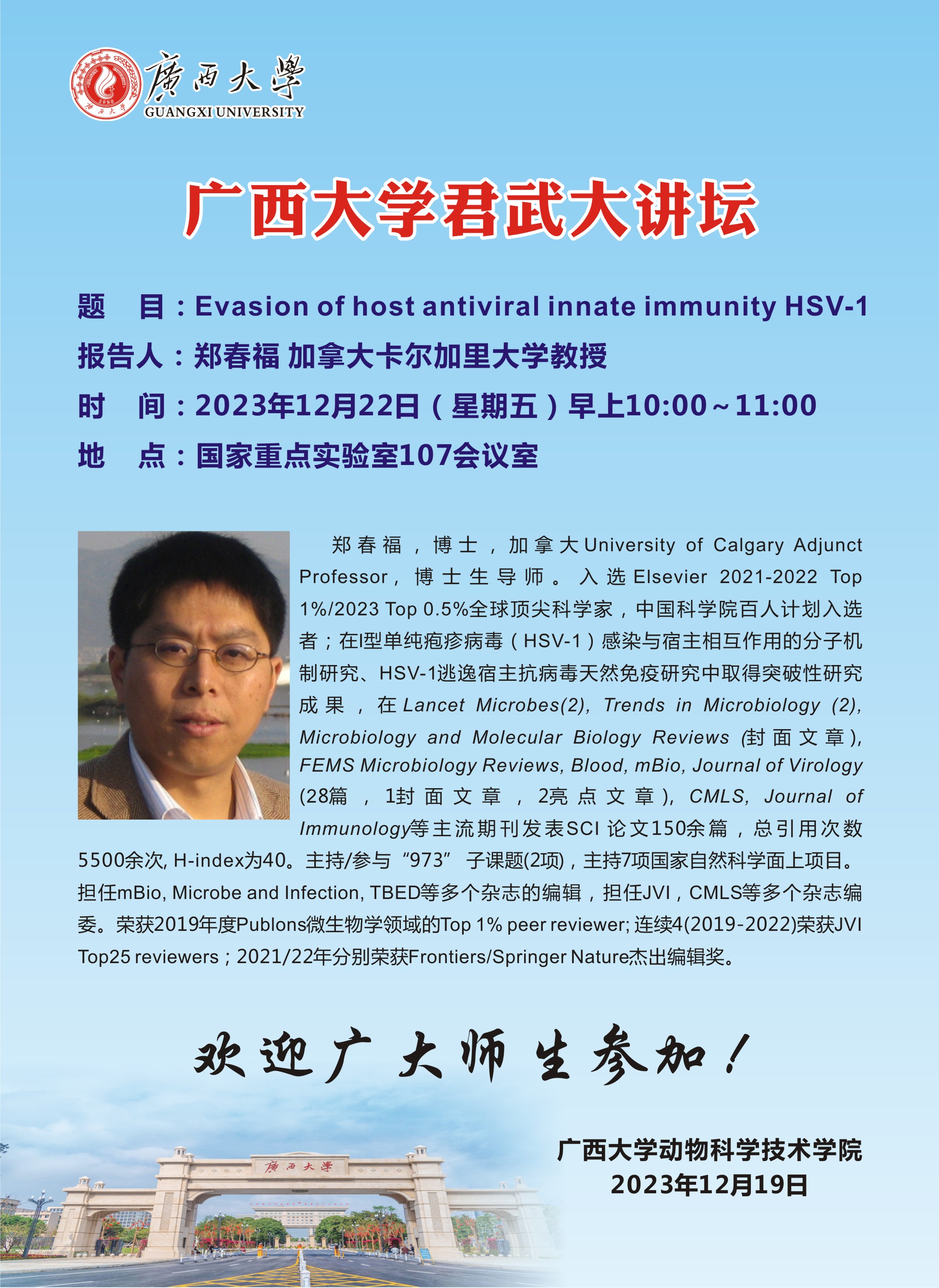 君武大讲坛:Evasion of host antiviral innate immunity HSV-1