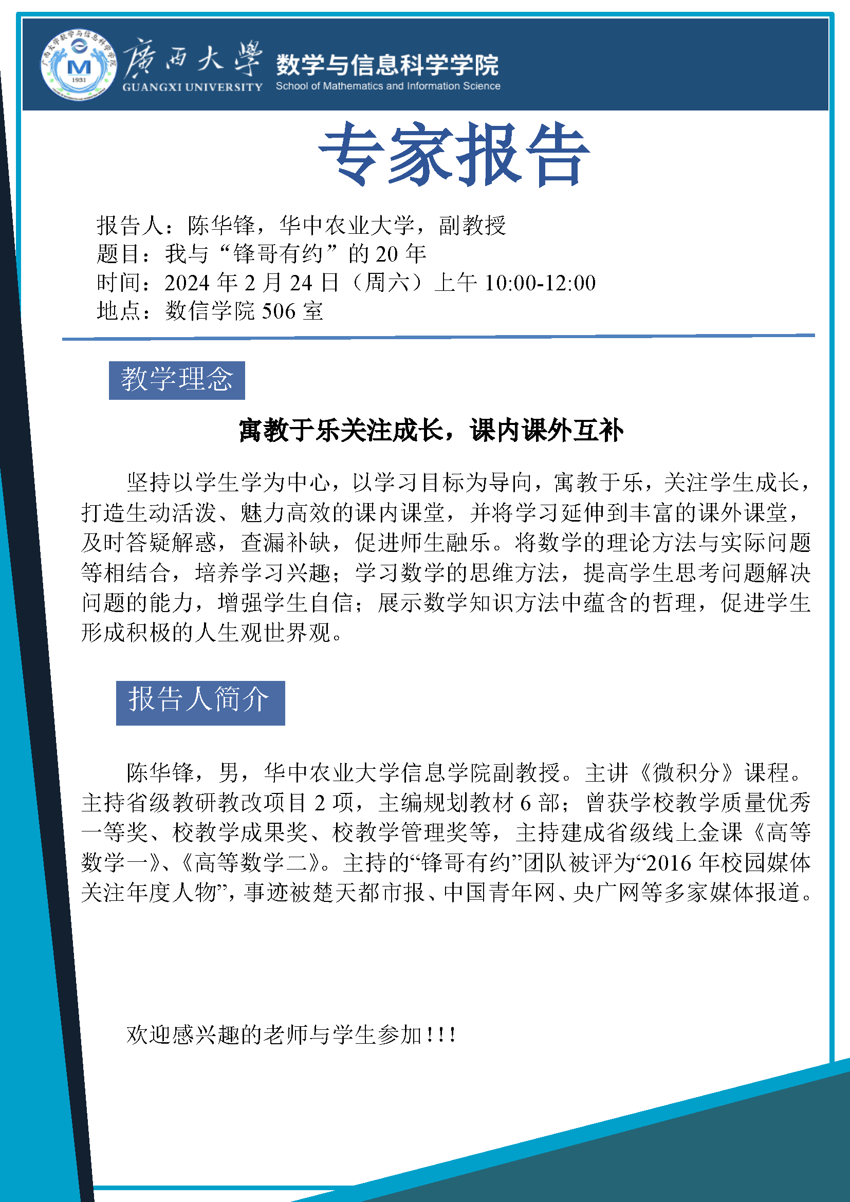 数信学院专家报告:我与“锋哥有约”的20年