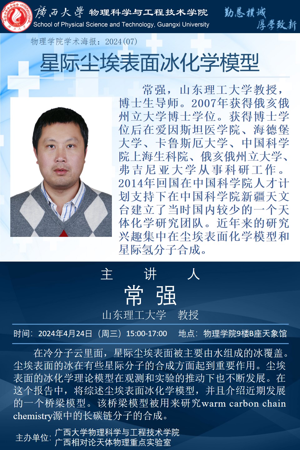 物理学院2024年学术报告之07:星际尘埃表面冰化学模型