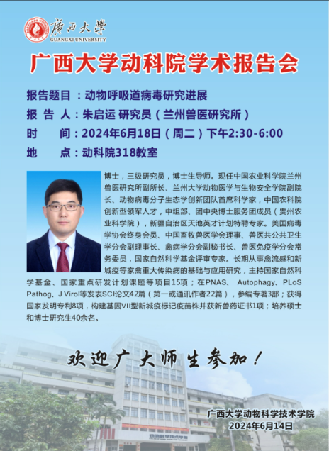 动物科学技术学院学术报告会: 动物呼吸道病毒研究进展