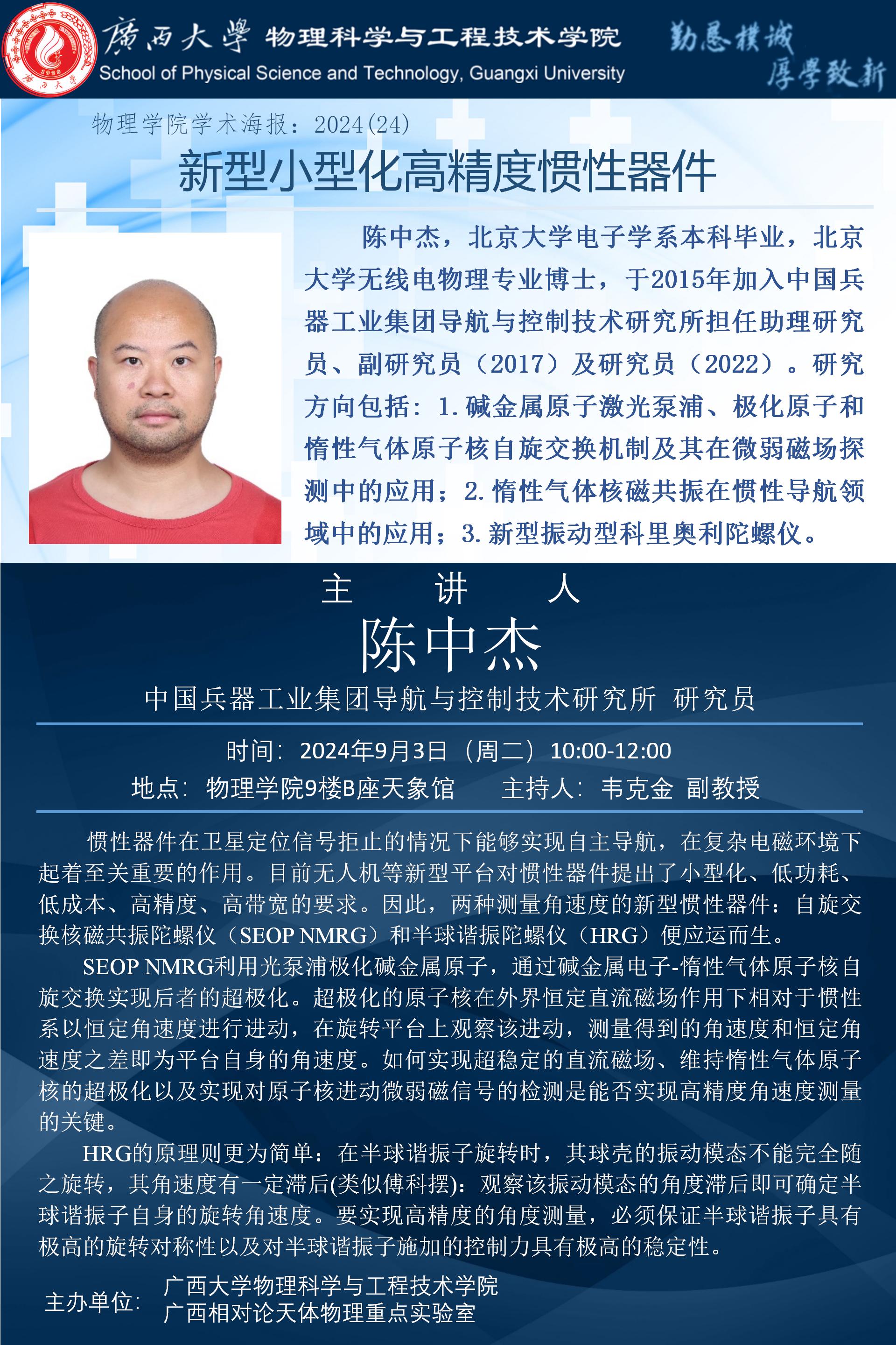物理学院2024年学术报告之24:新型小型化高精度惯性器件