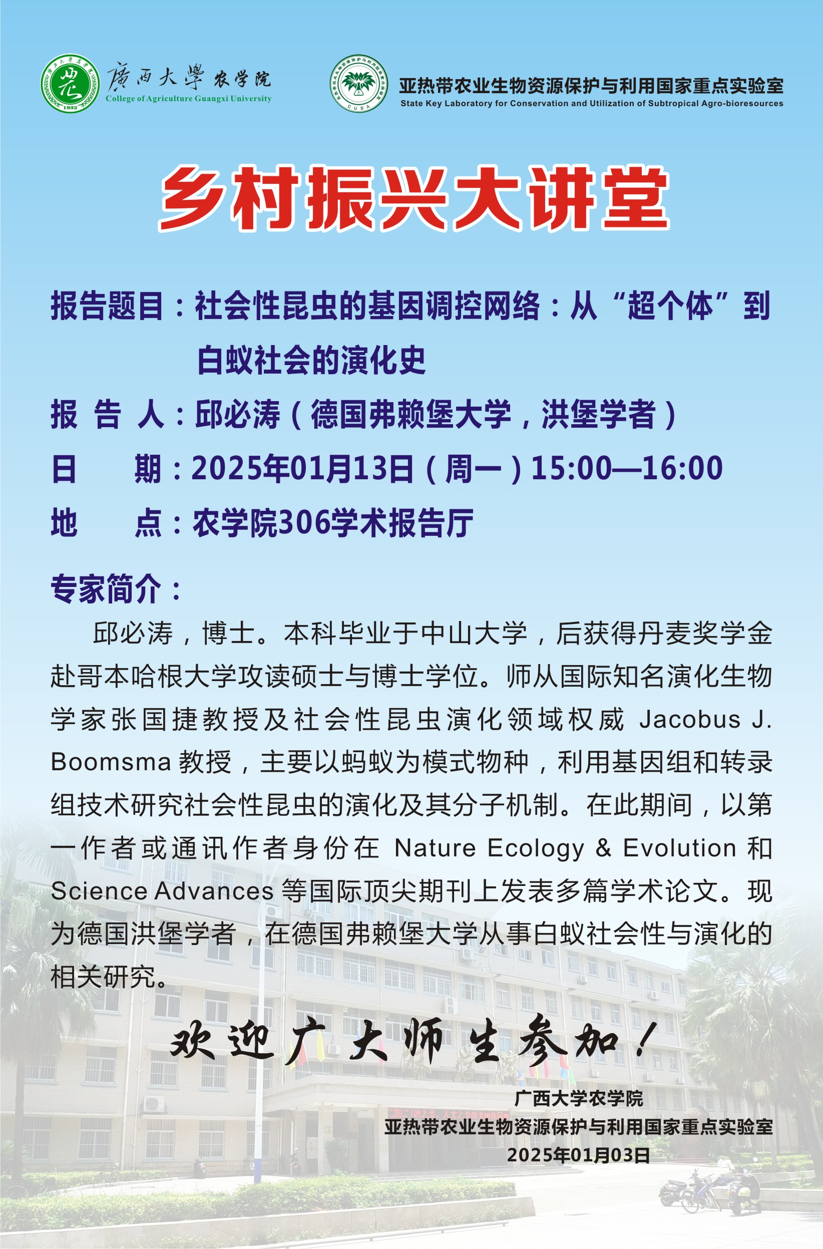 乡村振兴大讲堂:社会性昆虫的基因调控网络——从“超个体”到白蚁社会的演化史