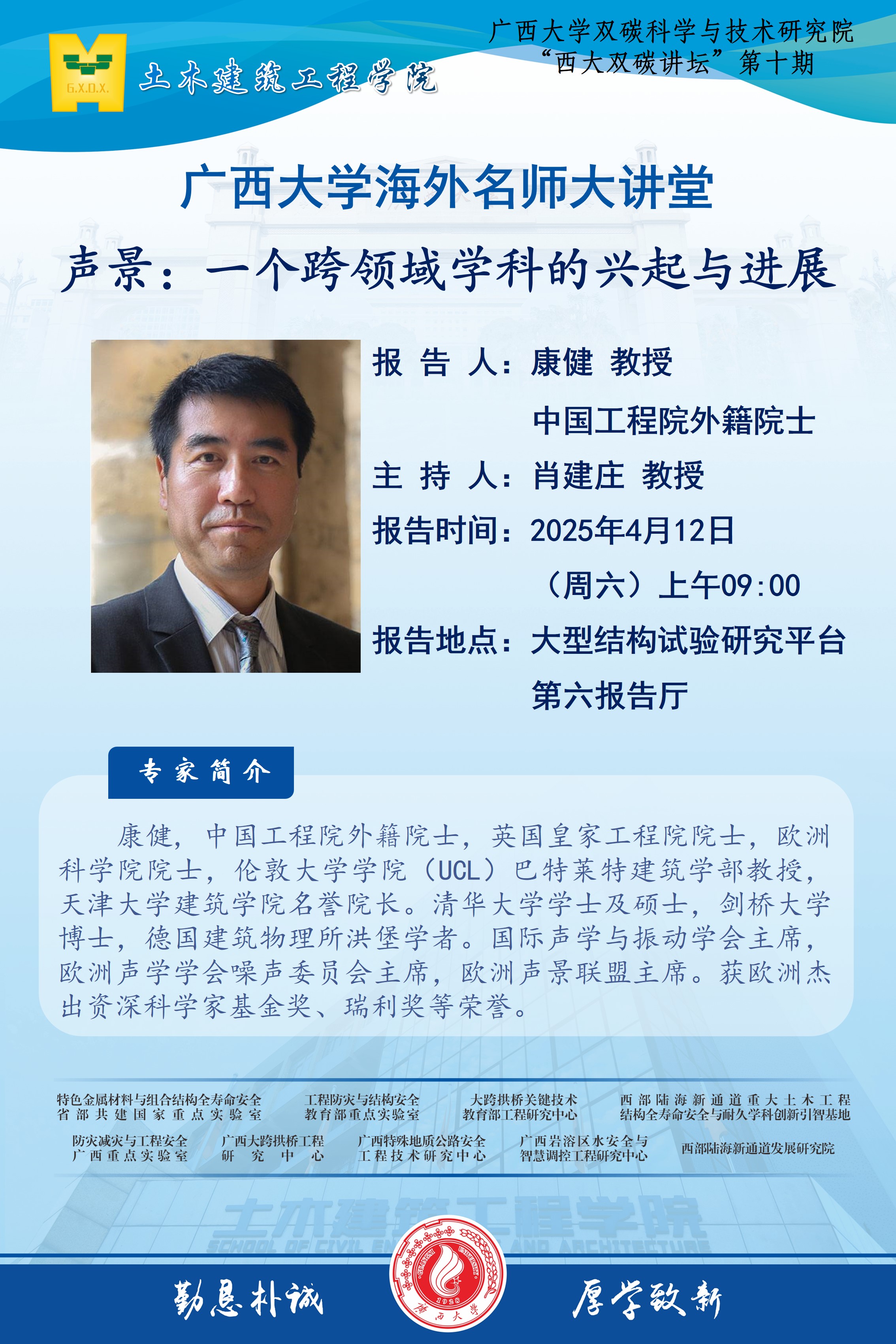 海外名师大讲堂、土木建筑工程学院、双碳科学与技术研究院学术报告 声景:一个跨领域学科的兴起与进展