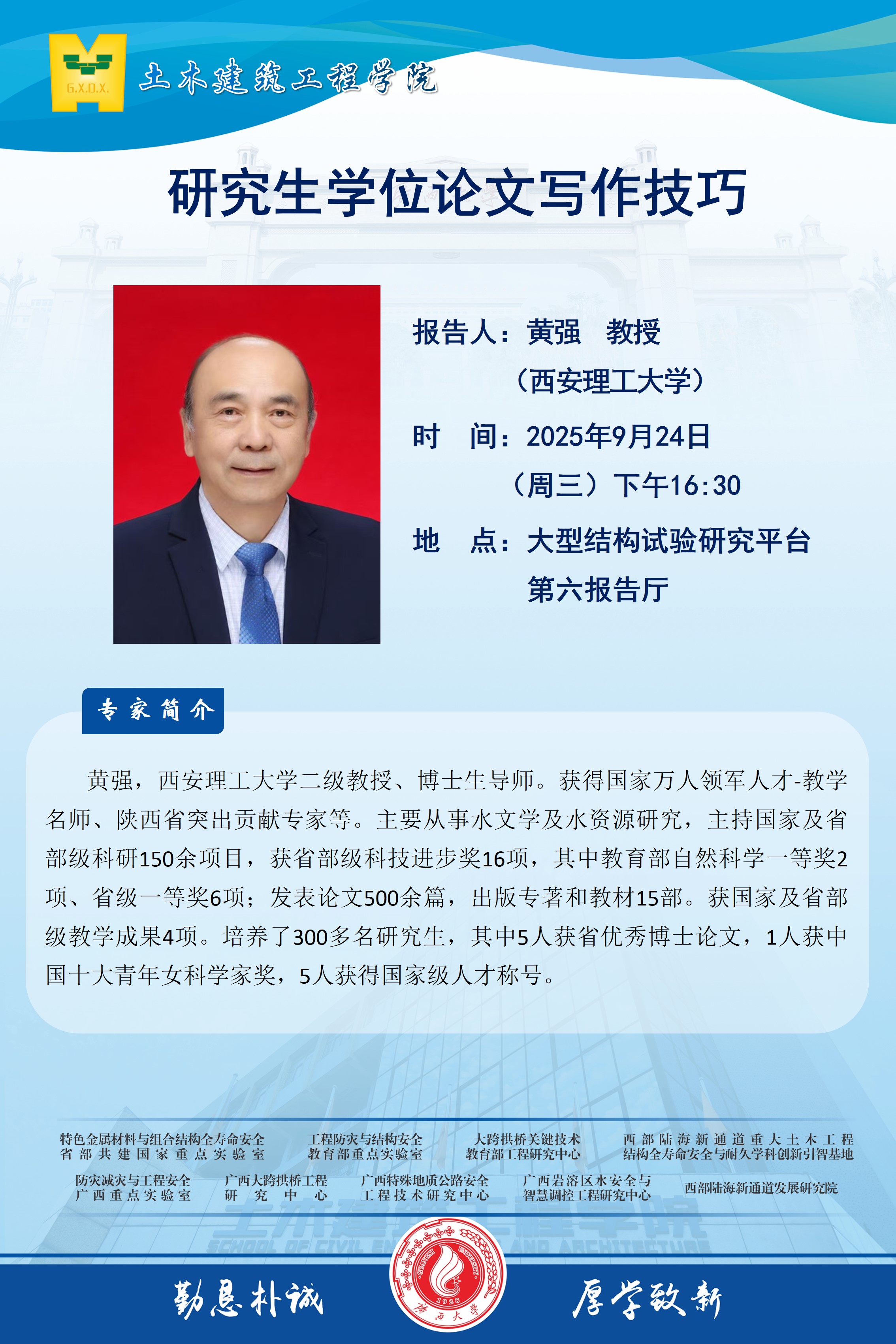 土木建筑工程学院学术报告:研究生学位论文写作技巧